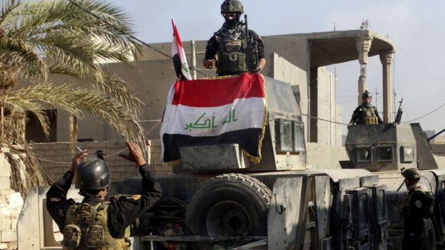 Iraqi government forces have been fighting to retake the city - about 90km (55 miles) west of the capital, Baghdad - for weeks.